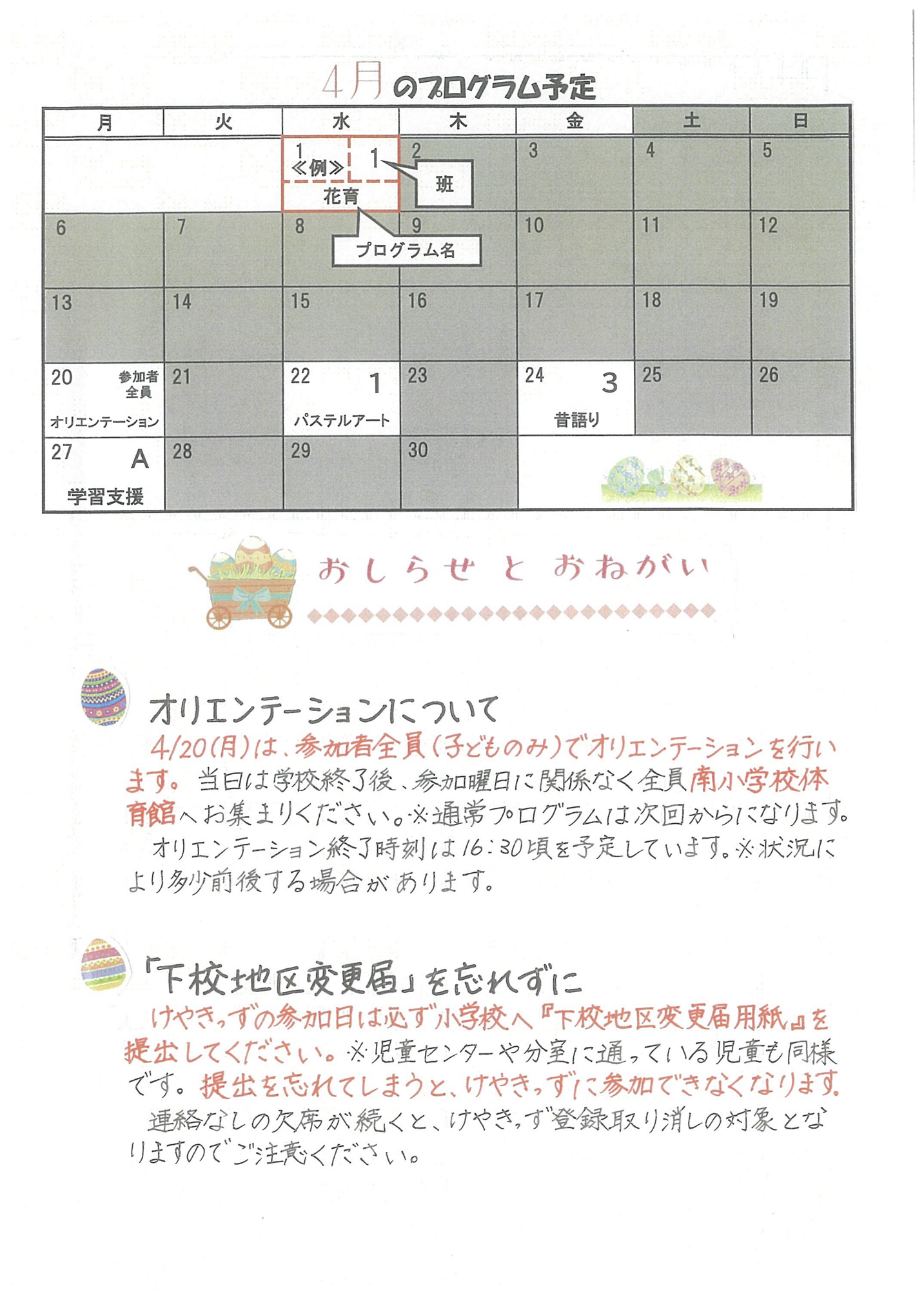 ・10月から3月は活動終了時間が午後4時を過ぎる場合にのみ保護者送迎必須